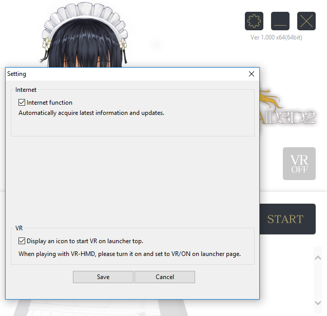 Open Settings by pressing the gear located at the upper right corner of the launch screen. Make sure the "Internet Function" is checked and press "Save". After finishing all of this, start the game.